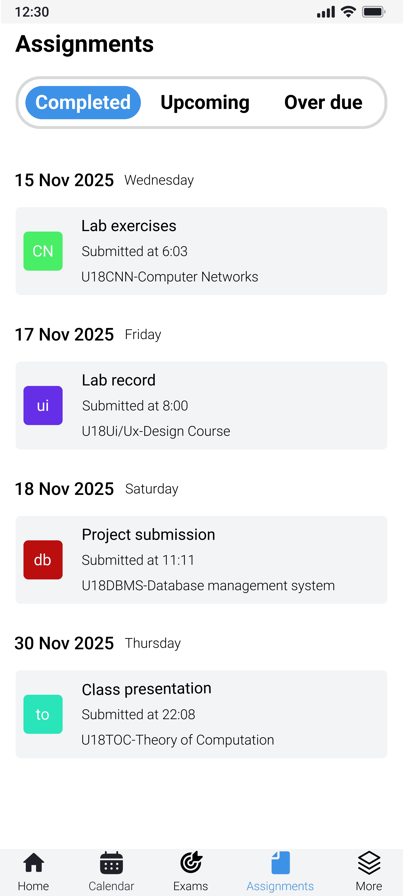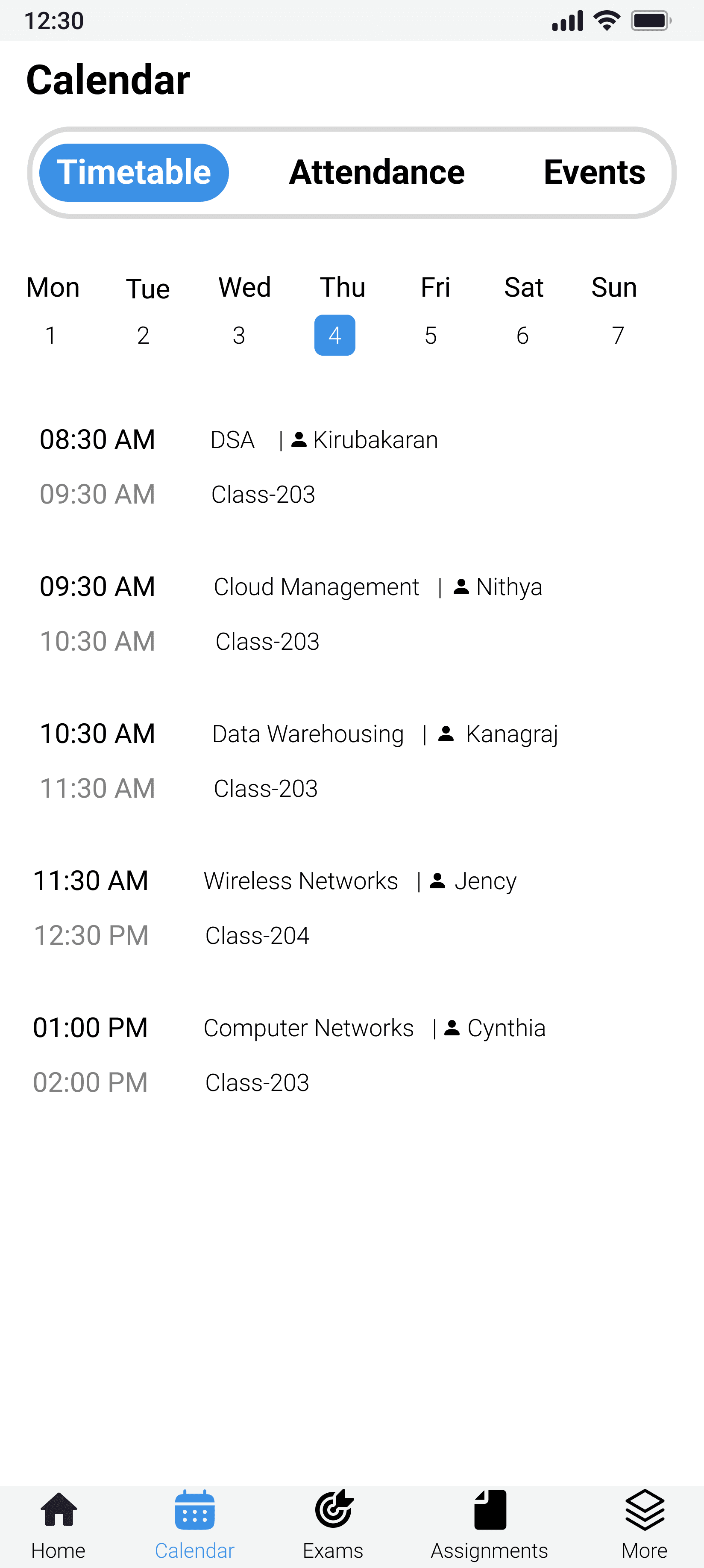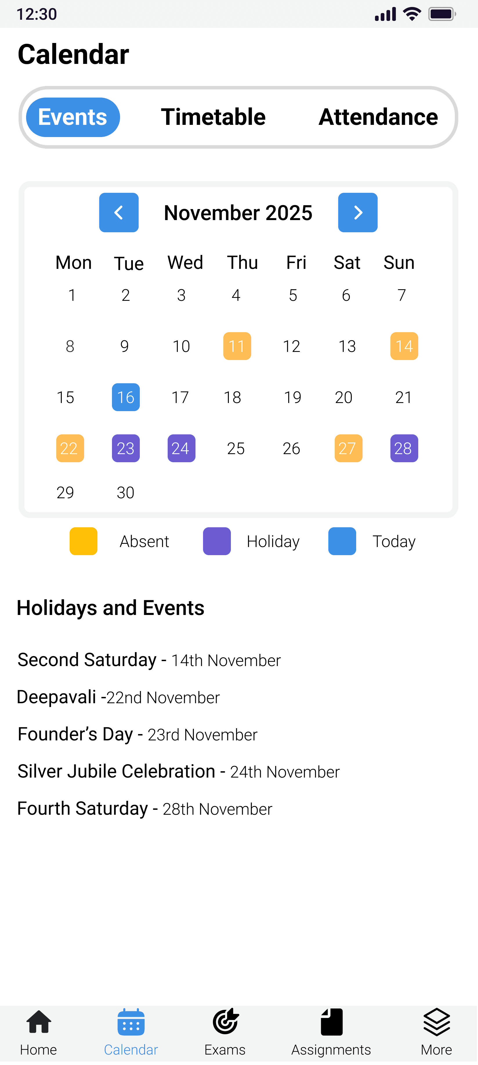 Mapped out cleaner user flows for core tasks like attendance, timetable viewing, and assignment tracking.