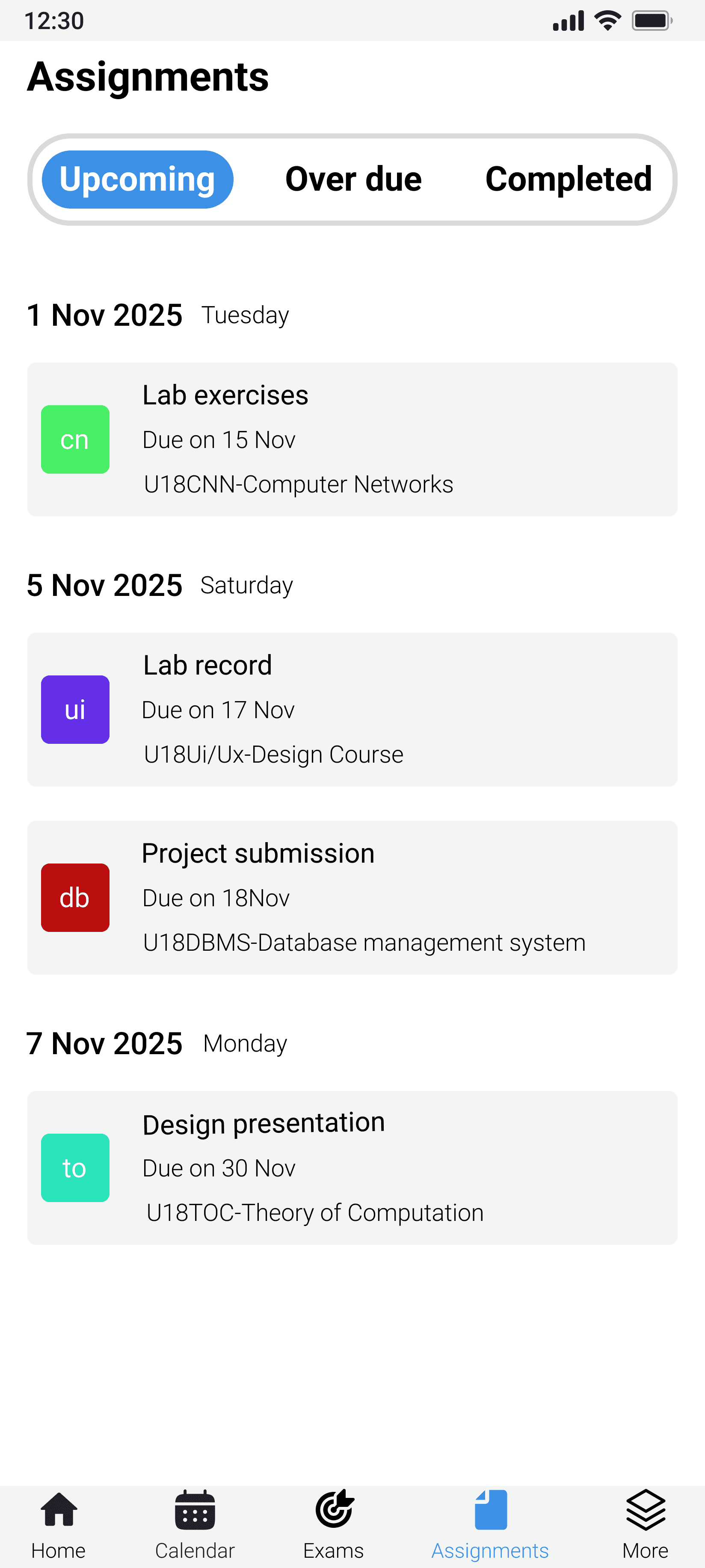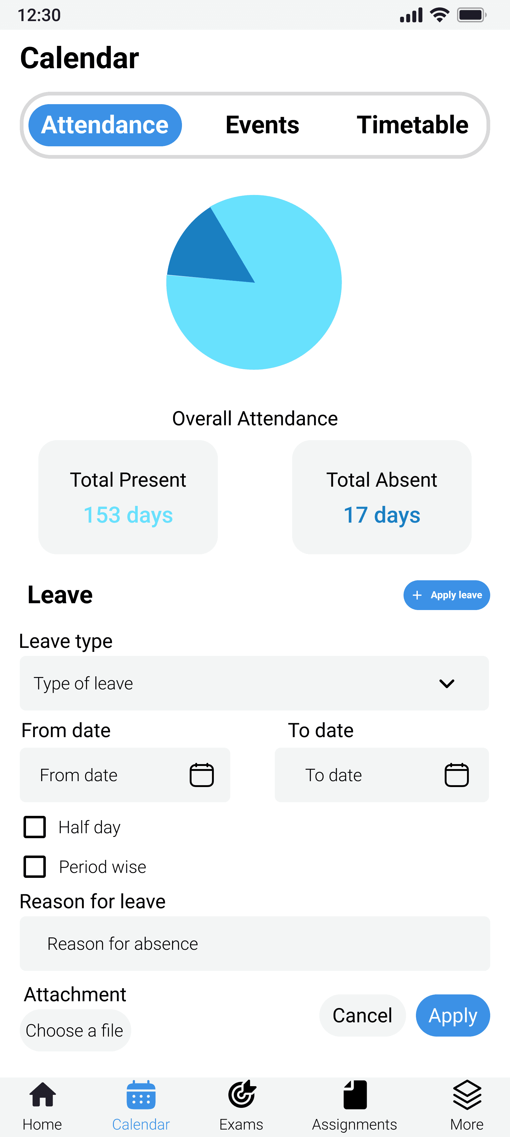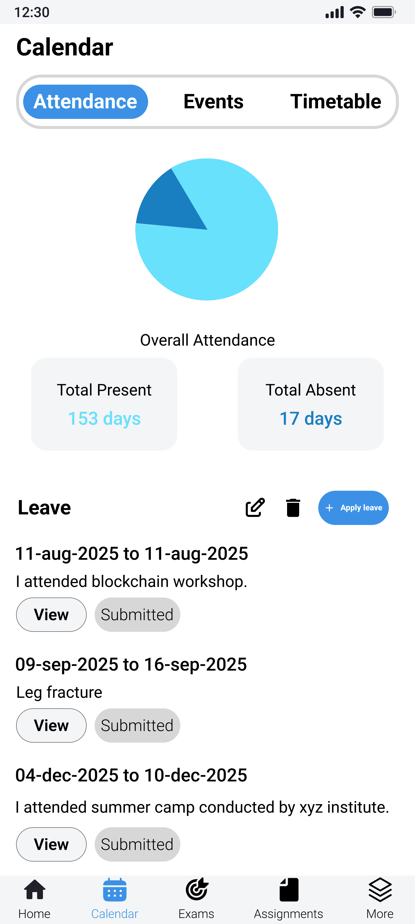 Mapped out cleaner user flows for core tasks like attendance, timetable viewing, and assignment tracking.