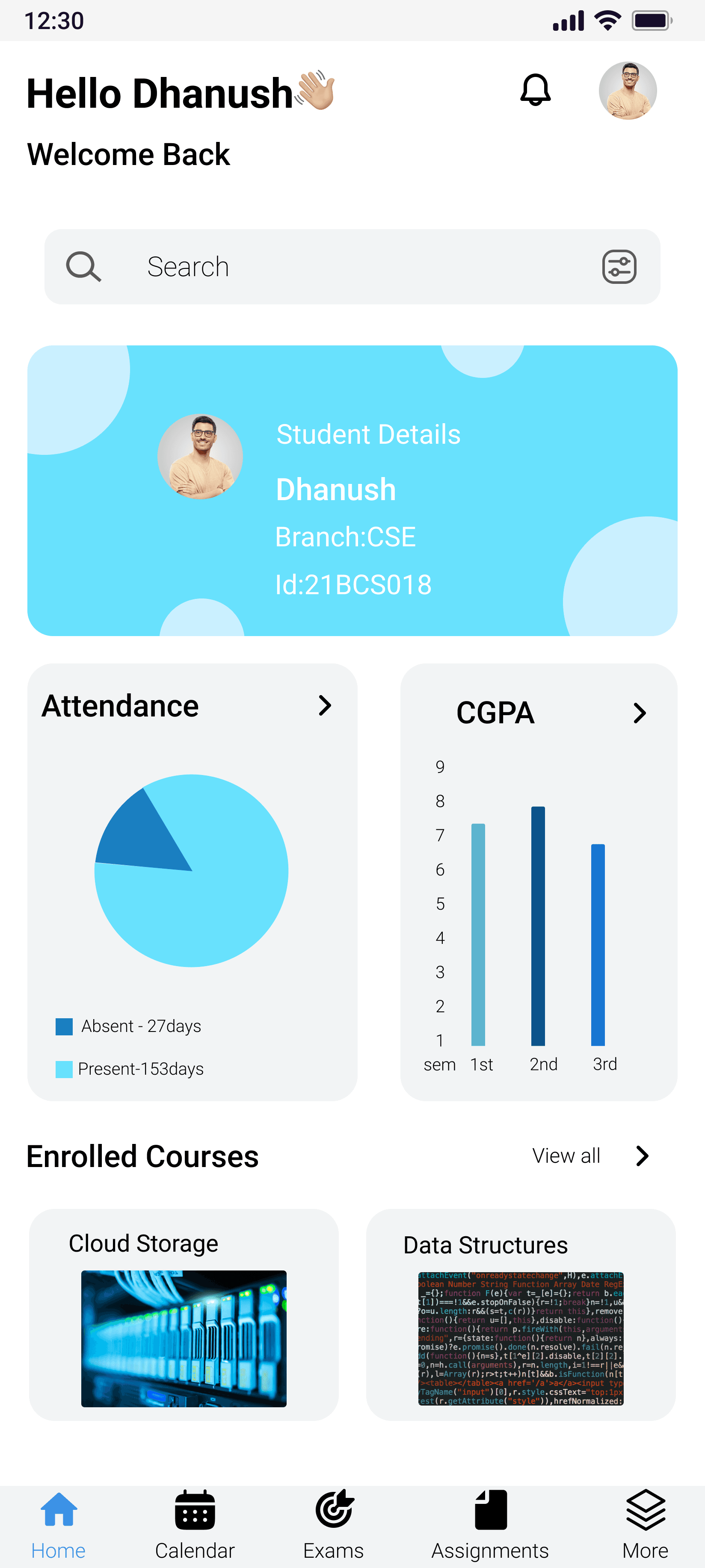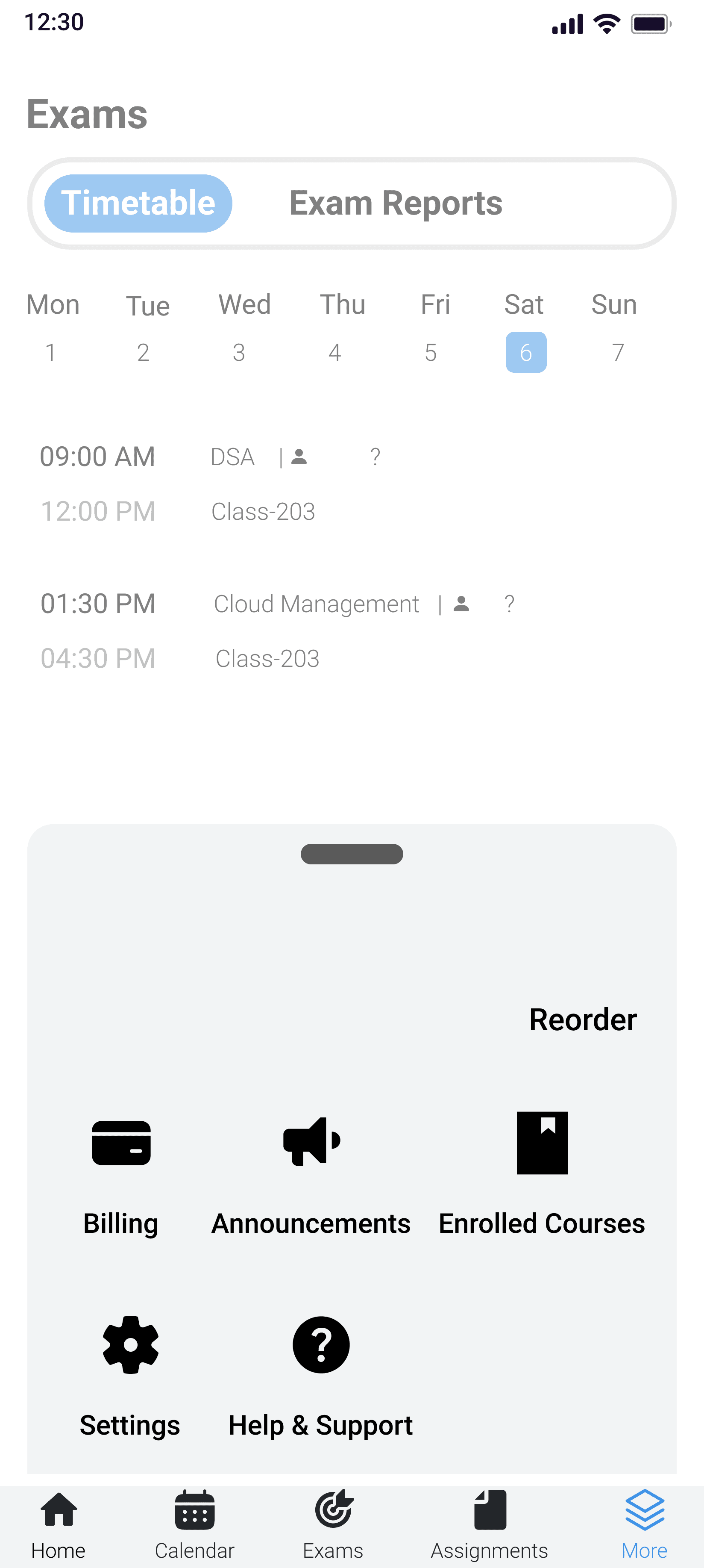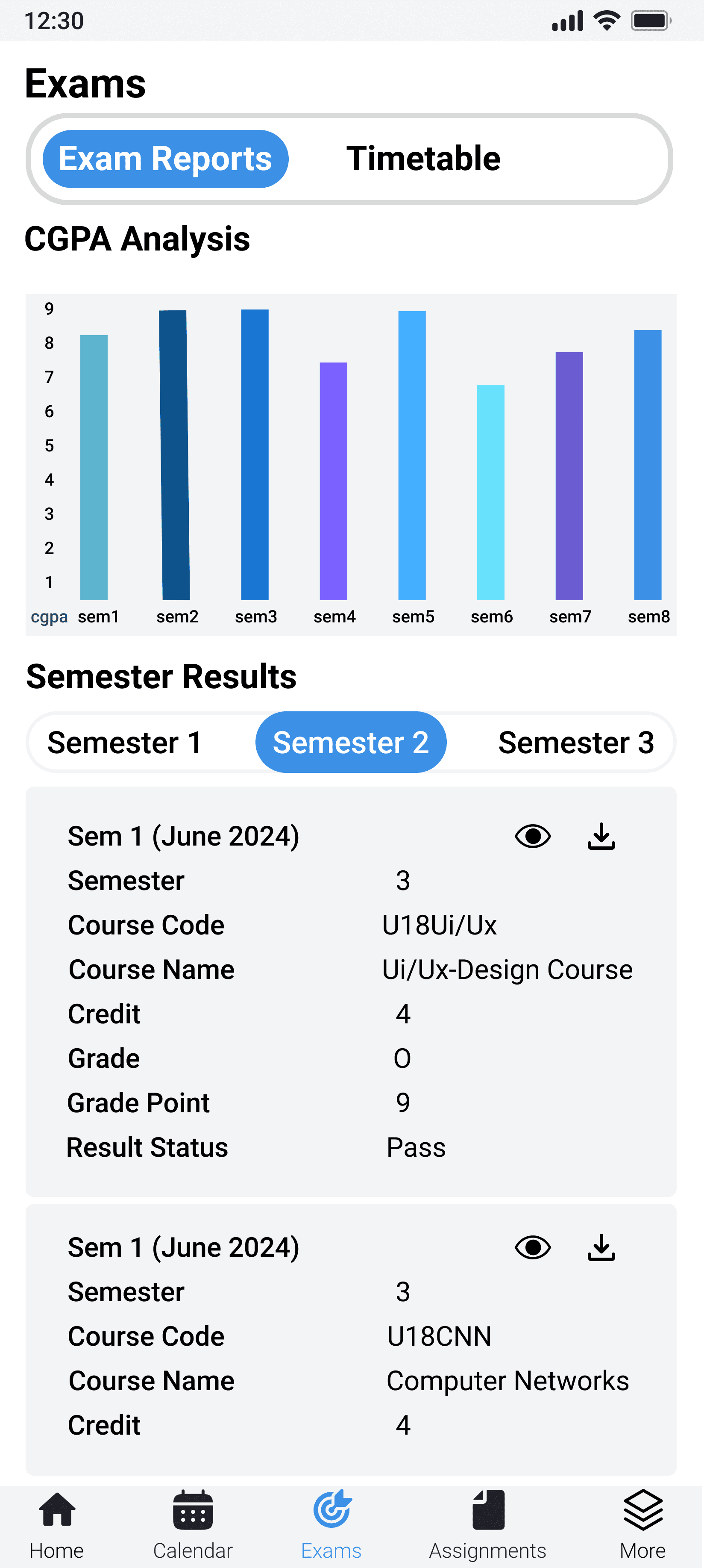 MyCamu is a widely-used student portal, but the original app presented students with cluttered layouts, scattered information, and confusing navigation. Essential tasks like checking attendance, viewing timetables, and accessing assignments required too many steps.